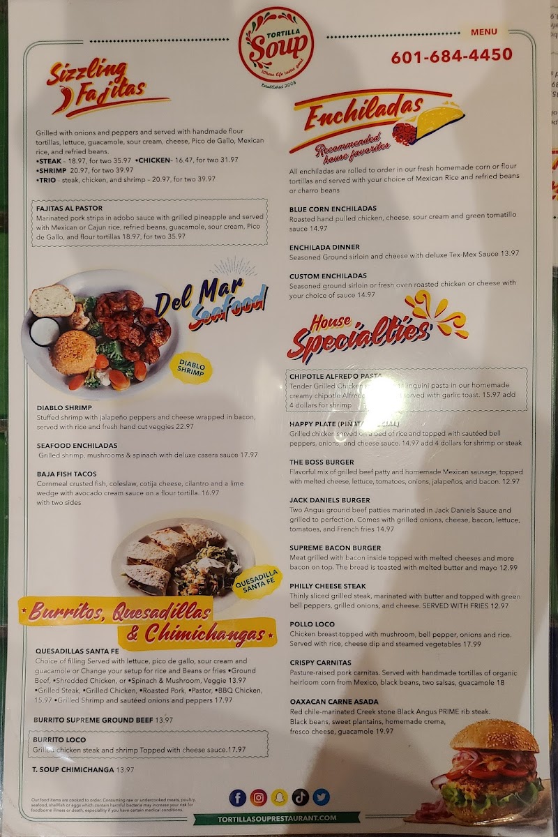 Welcome to Tortilla Soup Mexican Restaurant, a hidden gem located at 201 Anna Dr, McComb, MS. This vibrant eatery blends authentic Mexican flavors with a modern ambiance, perfect for casual dining or special occasions. The menu boasts a variety of tantalizing options, from the jalapeno honey grilled chicken to the crispy southwest egg rolls, each dish crafted with fresh ingredients that promise to excite your palate.